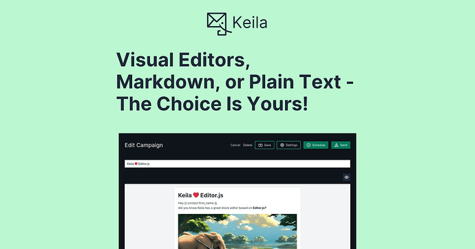 Bon diaaa. Keila tiene varios editores, desde texto sin más hasta MJML (que nunca he probado porque no lo he necesitado). Yo utilizaba el “Block Editor” y como mínimo para lo que yo necesitaba, muy bien.