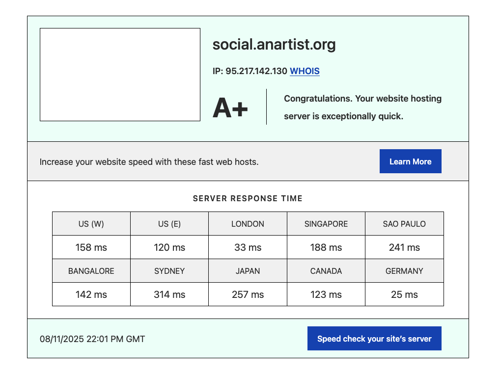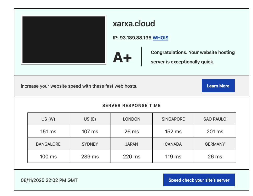 He hecho algunas comprobaciones de la velocidad de respuesta, comparandola con otro servidor maomenos de nuestras mismas características y los resultados son muy buenos!