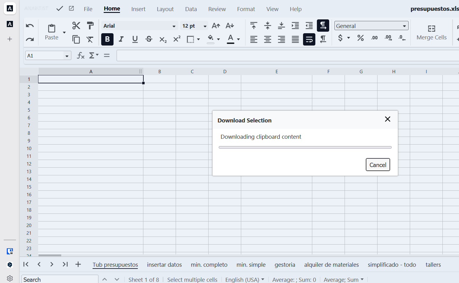 hola! estoy usando un documento de calculo de nextcloud que tiene multiples sheets. quiero copiar un bloque de celdas de un sheet a otro sheet que está abierto en otra pestaña. no está funcionando el simple copiar-pegar ni “pegar especial”. aparece siempre esta dialogo pero sin resultados despues: