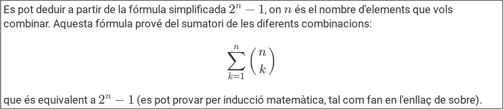 Ander hizo el cálculo (2^6-1) y salen 63 combinaciones, jajaja. Qué complejo el asunto…